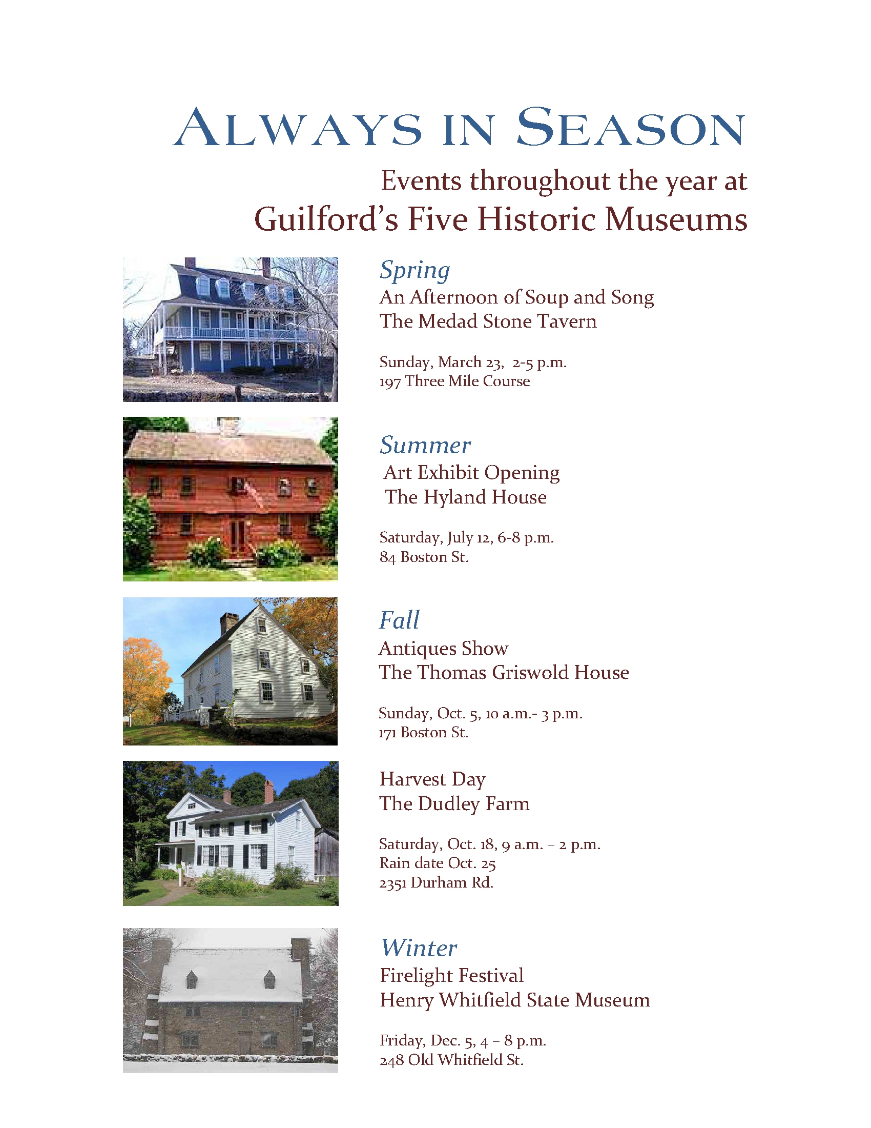 Our mission is to share Guilford's rich colonial history and to inspire ongoing stewardship of that legacy.