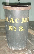 In the 17th and early 18th Centuries fire fighting equipment was rudimentary consisting largely of buckets, ladders, wet blankets or bags, along with a well and sheer manpower. Laws required residents to purchase fire buckets and keep them in repair. Fire buckets in colonial towns had the owner’s name printed on them, such as the one pictured that once belonged to “Issac Mix” and now resides in the collections of the Hyland House Museum. Having a name on the fire bucket allowed for its return to the rightful owner after the fire. Sometimes an owner might have several buckets. We knew this of “Issac Mix” who had at least 3, as indicated by the “No.3” printed on the bucket. The number of buckets a homeowner or business had was determined by the level of risk of fire. For instance, the town baker had 3 buckets and a brewer had 6 buckets on hand in case of fire. Fire Buckets generally held 2 – 3 gallons of water. They were made by local cobblers or saddlers patterned after English fire buckets.